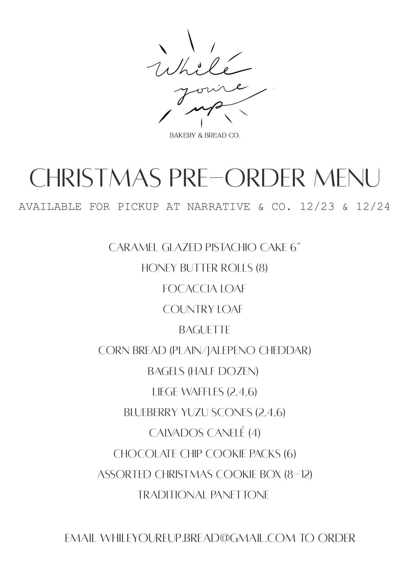 Pre-order holiday treats for pickup at Narrative & Co. on 12/23 and 12/24!